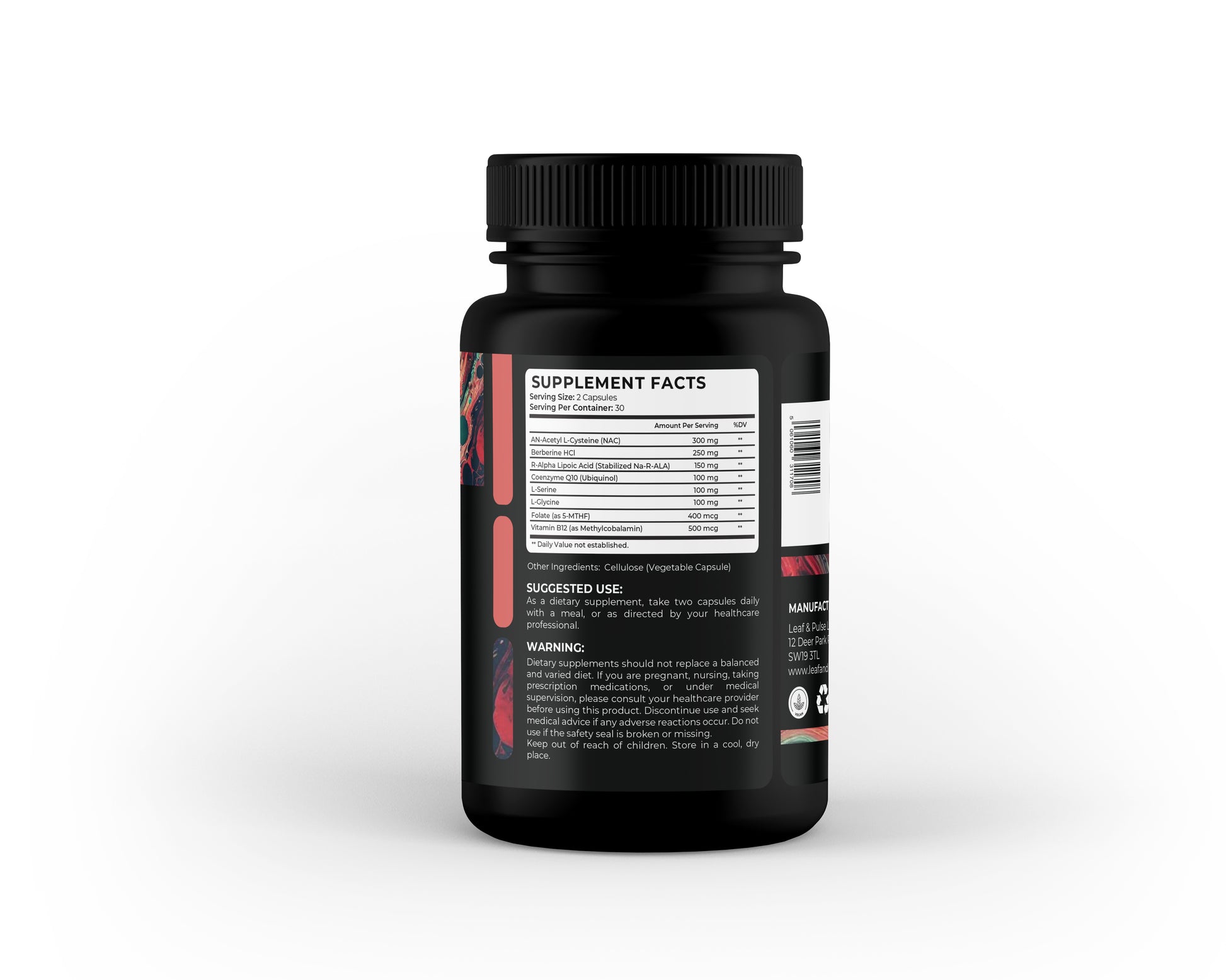 This clean, plant-based formula features Berberine, Acetyl-L-Cysteine, Alpha-Lipoic Acid, CoQ10, and Vitamin B12, carefully combined to help support natural energy processes and daily vitality.